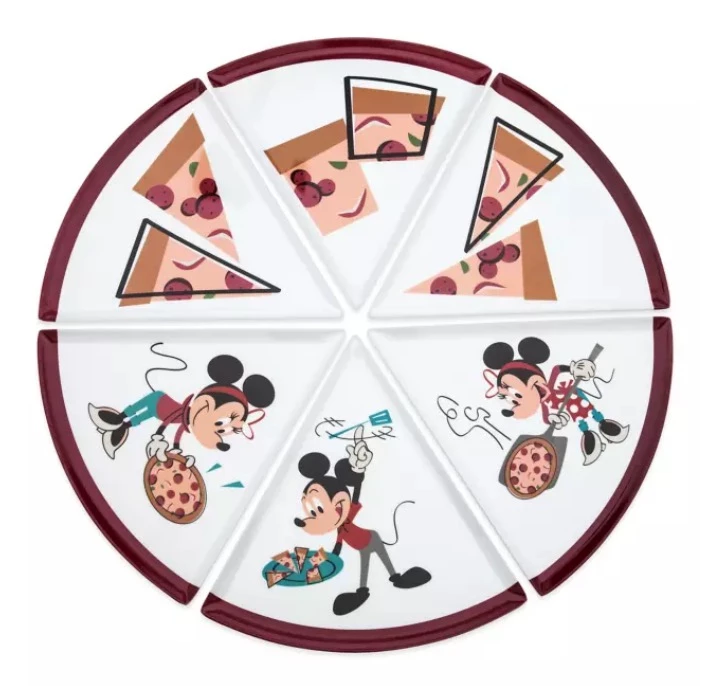 Serve up some delicious pizza on this funΒ plate inspired by the EPCOT International Food & Wine Festival 2022. FeaturingΒ artwork of Mickey and Minnie Mouse with some tasty pizza, the melamine plate separates into six pieces making it easy to serve up yummy individualΒ slices.