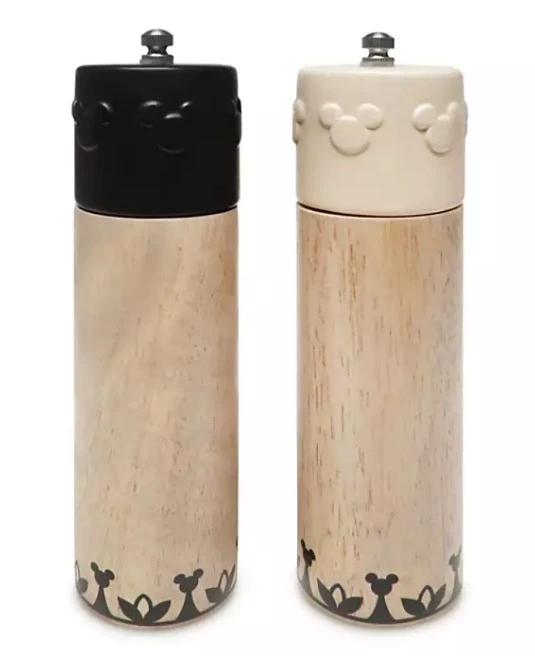 Mickey adds a fun twist to meal times with this grinder set. You’ll spice up the table setting with this stylish pair of wooden salt and pepper mills featuring black and white ceramic twist tops with raised Mickey icons.
